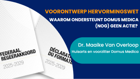 In deze video informeert dr. Maaike Van Overloop, voorzitter Domus Medica, je aan de hand van deze vragen. Wat staat er precies in het voorontwerp van de hervormingswet? Wat betekent dit concreet voor de huisartsen? En welke positie neemt Domus Medica in binnen dit debat? We lichten het graag toe!