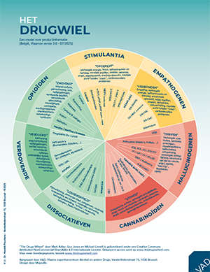 Het Drugwiel 3.0 kan je downloaden van de website van de VAD. Voor meer duiding over de middelen die opgenomen zijn in het Drugwiel verwijst de VAD naar PsychonautWiki of TripSit.Me.