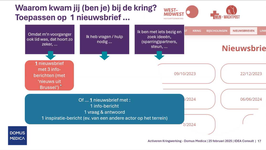De sessie werd gegeven door David Nassen (IDEA Consult), expert in ledenorganisaties. Domus Medica start in 2025 ook een traject voor de opmaak van een toekomstnota rond de kringwerking.