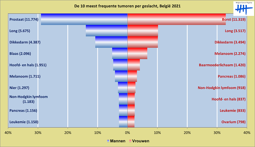 Stichting Kankerregister heeft zopas nieuwe cijfers gepubliceerd. Longkanker is de tweede meest voorkomende kanker bij mannen, met 5.675 nieuwe gevallen in 2021. Maar ook bij vrouwen staat deze kanker nu op de tweede plaats, met meer dan 3.500 nieuwe gevallen. Darmkanker zakt daardoor naar de derde plaats bij vrouwen, goed voor iets minder dan 3.500 gevallen.