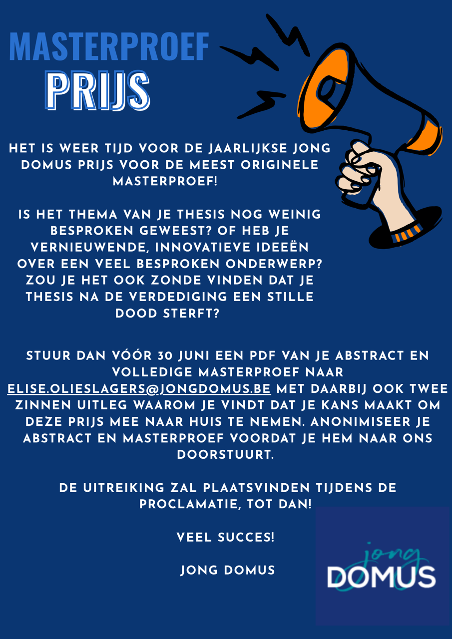 Het is weer tijd voor de jaarlijkse Jong Domus prijs voor de meest originele masterproef!