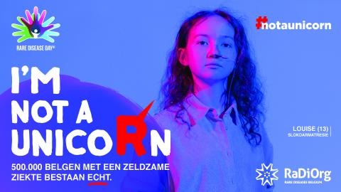 18 feb 2021 'Not a Unicorn': campagne voor de dag van de zeldzame ziektes 2021 Iedereen kent de eenhoorn. Maar niemand heeft er ooit écht een gezien. Een eenhoorn behoort immers tot onze fantasiewereld. Dit in tegenstelling tot mensen met een zeldzame ziekte. Zij bestaan écht. En ze zijn talrijk: meer dan 500.000 in België. Lees meer Algemeen nieuws