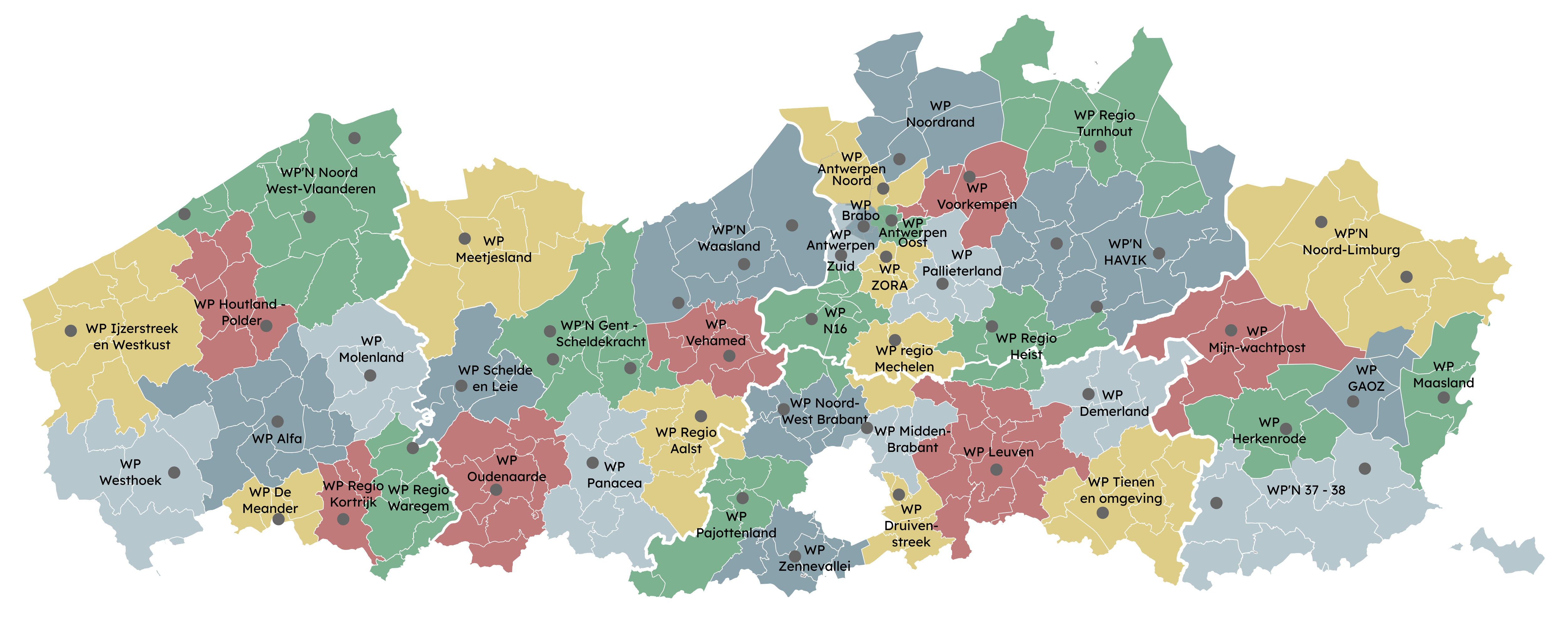 - enkele kleinere wijzigingen agv gemeentefusies en verschuivingen in werkingsregio.