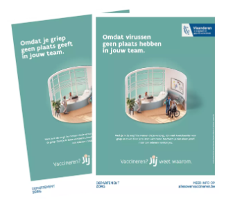 Affiche over covid- en griepvaccinatie voor zorgpersoneel