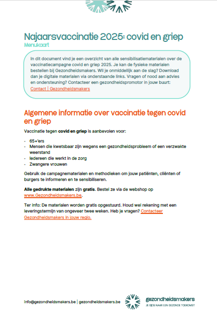 Menukaart Gezondheidsmakers - Najaarsvaccinatie 2025: overzicht van alle bestaande materialen hierrond