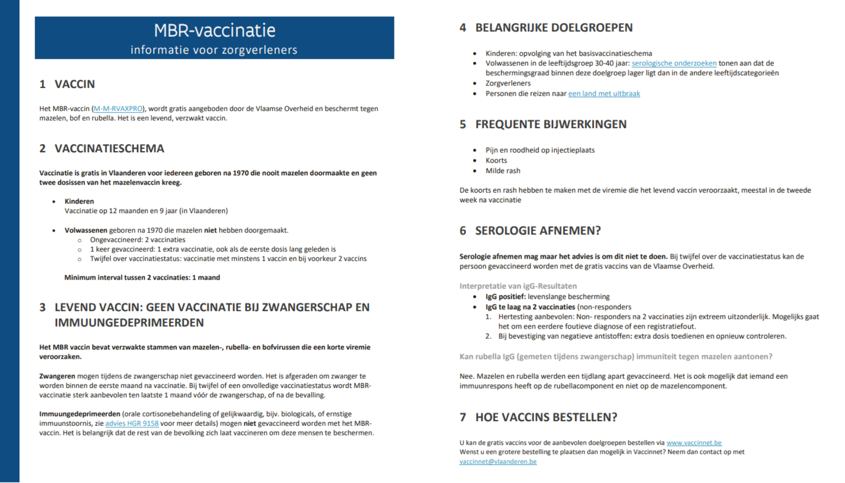 Daarnaast werd ook mazelenfiche ontwikkeld waarin informatie rond mazelenvaccinatie gebundeld wordt voor zorgverleners.